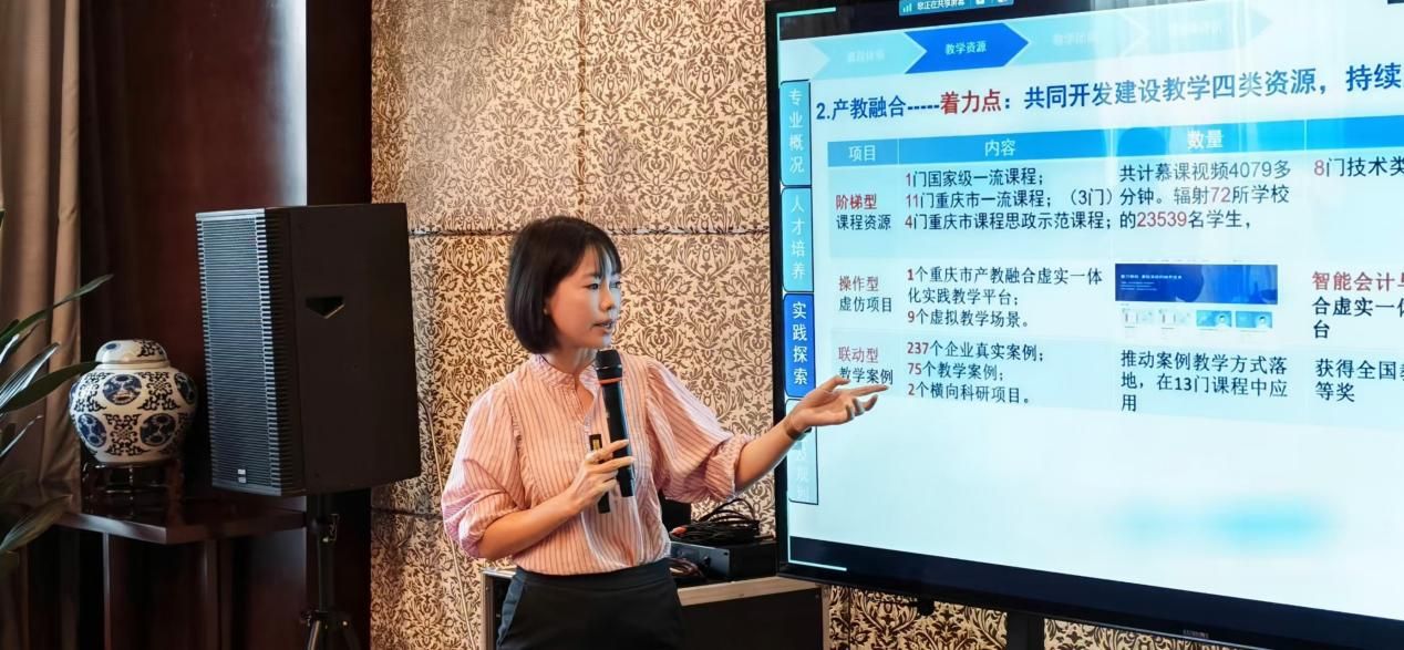 重庆财经学院太阳集团城官网李倩教授以“建一流专业,筑金质课程——重庆财经学院的探索和答卷”为主题,聚焦专业建设与课程建设两大核心板块分享实践经验。在专业建设方面,李倩院长围绕“深化产教融合,培养数智化会计人才”的目标,从专业概况、人才培养方案、实践探索、成效及规划四个维度展开,重点介绍了产教融合的“四大关键抓手”。