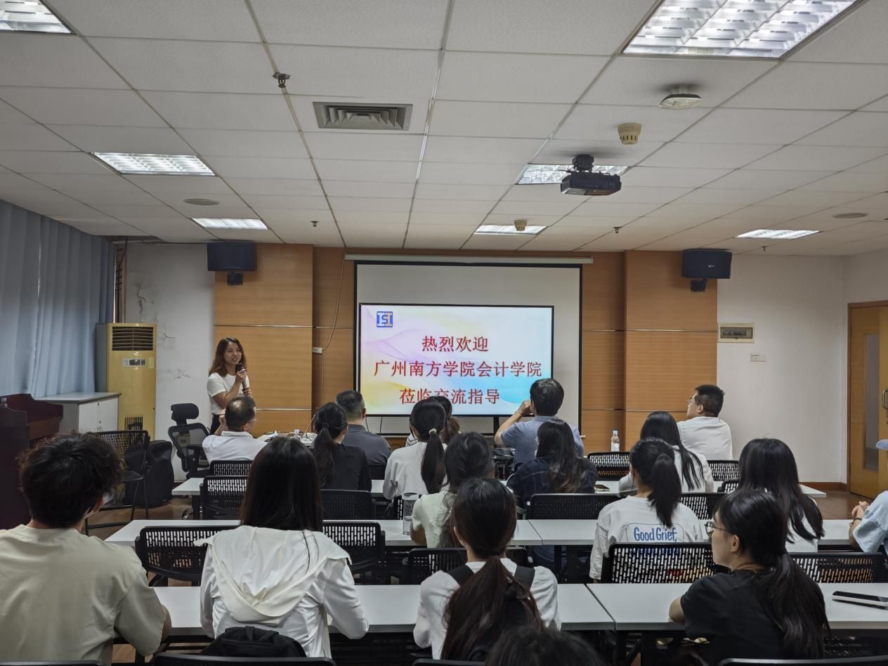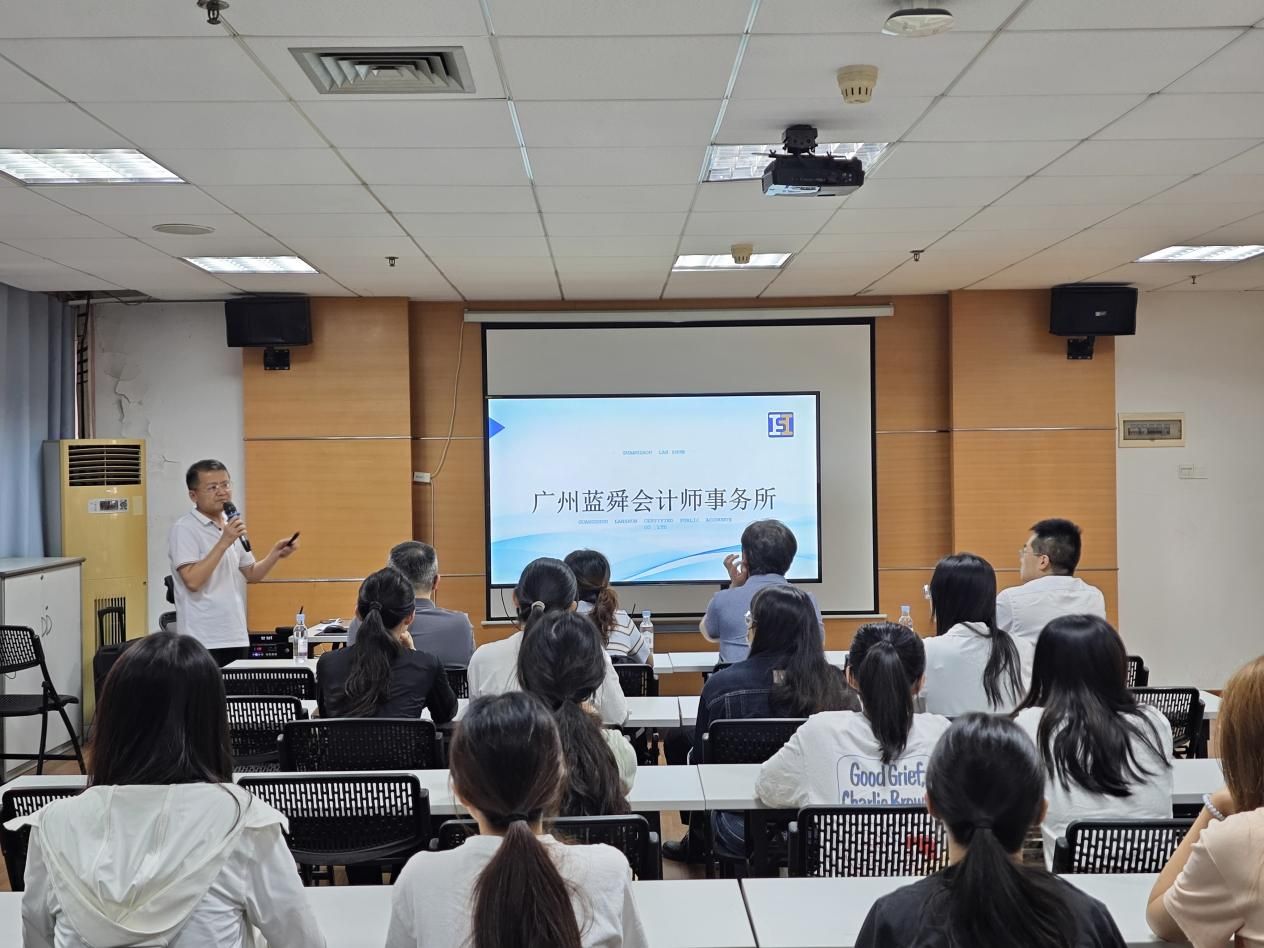 广州蓝舜会计师事务所所长陈东对师生们的到来表示热烈欢迎。在座谈会上,陈冬所长详细介绍了“蓝舜”的发展历程、组织架构与核心业务领域。 让同学们对行业实务有了初步且系统的认知他结合行业发展趋势。并进一步分享了实习生培养体系与职业发展路径,陈东所长表示,“蓝舜”会为实习生提供系统化的岗前培训,致力于通过参与真实项目,帮助实习生全面了解行业、提升综合能力。