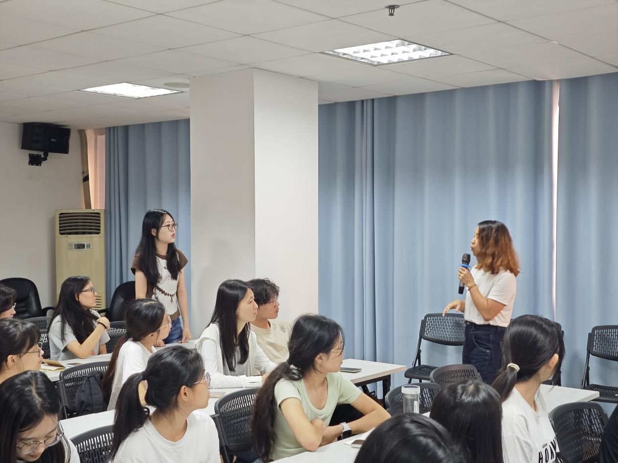 在交流提问环节,同学们围绕事务所的实习情况纷纷踊跃提问,就不同业务部门实习生的具体工作内容、事务所对实习生专业能力和软技能的核心要求展开讨论。面对同学们的提问,广州蓝舜会计师事务所行政部经理陈蔚明结合自身经历与公司政策,给予了详尽而中肯的解答,并鼓励大家夯实基础、勇于尝试,为即将到来的实习做好充分准备。