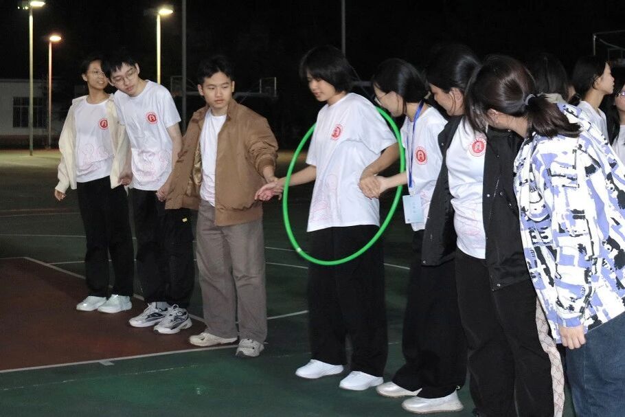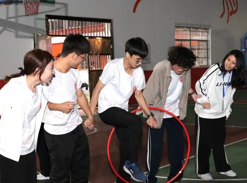 学员们手手相牵围成圆圈,呼啦圈的依次传递,象征着责任与担当的接续。